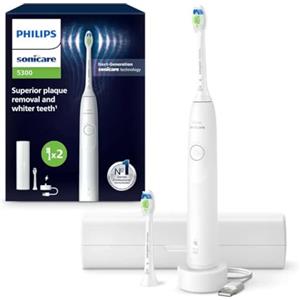 Philips Sonicare 5300 Spazzolino Elettrico Sonico HX7109/01 con Base di Ricarica e Custodia, 2 Livelli di Intensità, Sensore di Pressione, Doppio Manico Bianco e Nero