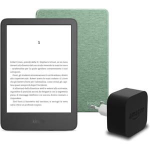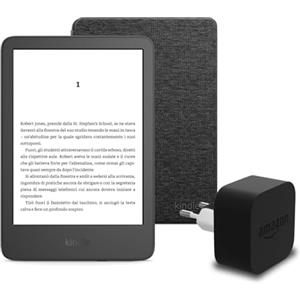 Amazon Il nuovo Kindle (versione 2024) da 16 GB senza pubblicità, una copertura in tessuto Amazon e un alimentatore Amazon Powerfast da 9 W.