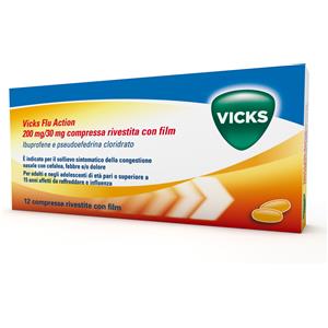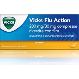 Vicks Flu Action 200 mg/ 30 mg Ibuprofene Pseudoefedrina 12 Compresse
