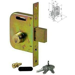 Welka Serratura per Cancelli 2 Mandate con Scrocco Reversibile, Catenaccio 35 mm, Cilindro Fisso e 3 Chiavi
