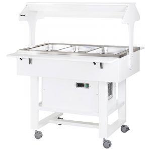 FORCAR Carrello Espositore Refrigerato in Legno con Tettoia Plexiglass, Temperatura 2° 10°C, 3 GN1/1, 2 Mensole Pieghevoli, Dimensioni 111x112x142h cm