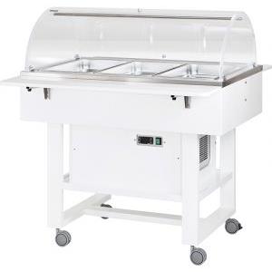 FORCAR Carrello Refrigerato Espositore Buffet in Legno Massello con Cupola in Plexiglass, Refrigerazione Statica 2° 10°C, Capacità 3 GN 1/1, Dimensioni 111x90x126h cm