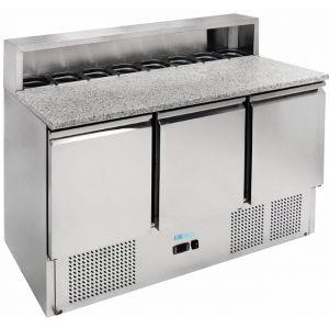 FORCAR-COLD Saladette Refrigerata Statica GN1/1 a 3 Ante con Piano in Granito - Capacità 400 Lt, 320 Watt