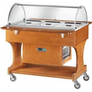 FORCAR Carrello Espositore Refrigerato in Legno Massello con Cupola in Plexiglass, Capacità 3 Bacinelle GN 1/1, Refrigerazione Statica 2° 10°C