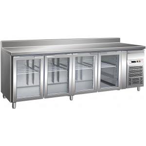 FORCAR-FREDDO Tavolo Refrigerato Ventilato Inox AISI304 con 4 Porte a Vetro, Temperatura 2/ 8 °C