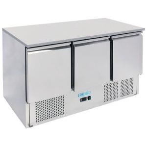 FORCAR-COLD Saladette Refrigerata Statica AISI201 con 3 Porte, Piano in Polietilene, Sbrinamento Automatico, Dimensioni 136,5x70x85 cm