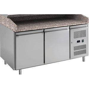 FORCAR-COLD Tavolo Refrigerato Ventilato per Pizzeria in Acciaio Inox AISI201 con Doppia Porta e Sbrinamento Automatico