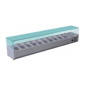 FORCAR-FREDDO G-RI15038V - Vetrina Refrigerata per Pizzerie 150x38 cm, Capacità 5 GN1/3 1 GN1/2, Temperatura 2°/ 8°, Acciaio Inox con Vetri di Protezione