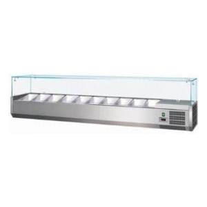 FORCAR-FREDDO G-RI15038V - Vetrina Refrigerata per Pizzerie 150x38 cm, Capacità 5 GN1/3 1 GN1/2, Temperatura 2°/ 8°, Acciaio Inox con Vetri di Protezione