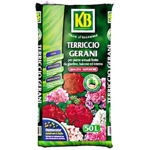 KB Terriccio Gerani e Piante Fiorite Premium - Substrato di alta qualità con torbe, argilla e concime minerale, 50 litri
