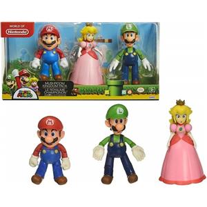 JAKKS Pacific Set Diorama Regno dei Funghi - 3 Action figure di Mario, Luigi e Peach alte 10 cm con multipli punti di articolazione