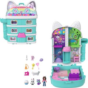 Polly Pocket - La Casa delle Bambole di Gabby, cofanetto con mini Gabby e 9 accessori, include gattini Pandy Panda, Dolcetto e Siregatta, giocattolo per bambini 4 anni, JFV02