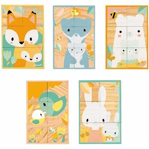 Janod Barchetta con 6 Cubi in Legno Massiccio - Puzzle Didattico per Bambini da 1 Anno - Sviluppo Motricità Fine e Creatività