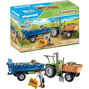 PLAYMOBIL Country 71249 Trattore con rimorchio, incl. cassete per Il Trasporto, Trattore Verde per la Fattoria Biologica, Giocattolo sostenibile per Bambini dai 4 Anni in su