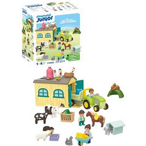 Playmobil Junior 71656 Allegra Fattoria - Set da Gioco Sostenibile per Bambini dai 12 Mesi con Trattore, Rimorchio e Animali