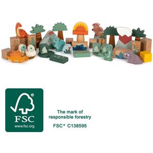 Small Foot Dino - Set di Costruzioni in Legno FSC 100% Certificato, 34 Pezzi, per Bambini dai 12 Mesi, Colore Colorato