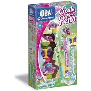 Clementoni Create Your Pens: Wonderful Butterflies - Kit Creativo per Bambini 6 Anni con 3 Penne Personalizzabili, Inchiostri e Accessori