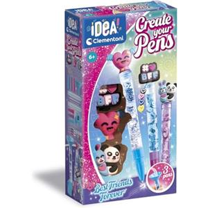 Clementoni 18872 Create Your Pens: Best Friends Forever - Kit Creativo per Bambini 6 Anni con 3 Penne Personalizzabili e Inchiostri