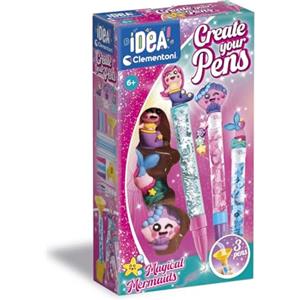 Clementoni Create Your Pens Magical Mermaids - Kit Creativo per Bambini 6 Anni con 3 Penne Personalizzabili, Inchiostri e Accessori
