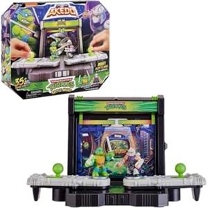 GIOCHI PREZIOSI S.P.A. Akedo Battle Arena delle Tartarughe Ninja - Giocattolo con 2 modalità di gioco, suoni di combattimento, 2 bambole guerrieri e 1 accessorio
