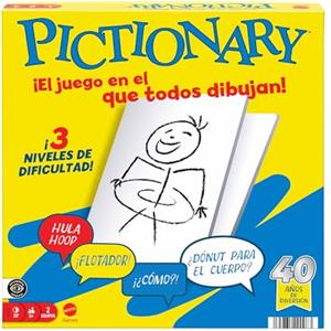 Mattel Games - Pictionary, l'iconico gioco da tavolo per tutta la famiglia, 2 squadre con indizi in spagnolo, pennarelli cancellabili, lavagnette e clessidra, giocattolo per bambini, 8+ anni, JDY00
