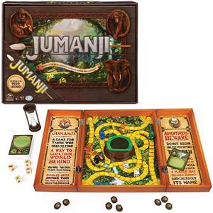 Spin Master Games Editrice Giochi, Jumanji, Jumanji Il Gioco da Tavolo in Legno, Formato Deluxe, Giochi da Tavola di Avventura per Famiglie e Amici, da 2 a 4 Giocatori, 8+ Anni, packaging may vary