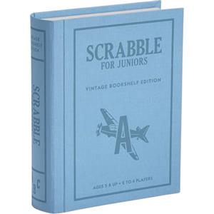 WS Game Company Scrabble for Juniors Vintage Bookshelf Edition, tavola su 2 lati, cresce con il tuo bambino, gioco di parole avvolto in tessuto, per bambini dai 5 anni in su