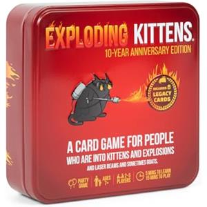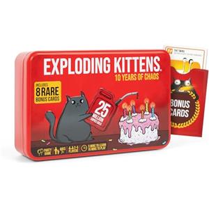 Exploding Kittens -10th Anniversary Collectible Tin (New Edition) - Updated with 8 Legacy Cards - Hilarious Fast-Paced Card Game for Adults and Kids, Travel Friendly, Ideal for Family Game Night
