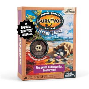 Exploding Kittens Survivor: Let's Go to Rocks Game for Ages 8+, 2 to 6 Players, Strategy and Challenge Party Game with Rocks, Cards, and Immunity Necklace.