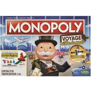 Monopoly Hasbro Gaming Monopoly - Viaggio in tutto il mondo, per famiglie e bambini, da 8 anni, con pedine tamponi inchiostranti e vassoio cancellabile a secco, multicolore, L