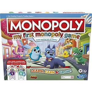 Monopoly My First Monopoly Game, gioco da tavolo per bambini dai 4 anni in su 2 lati, strumenti di insegnamento giocoso per famiglie, multicolore