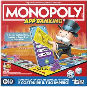 Hasbro Gaming, Monopoly App Banking, Gioco da Tavolo, Ideale per Famiglia e Amici, per Bambini e Bambine da 8 Anni in Su, Scansiona App Banca Gratuita, per 2-6 Giocatori, in Italiano