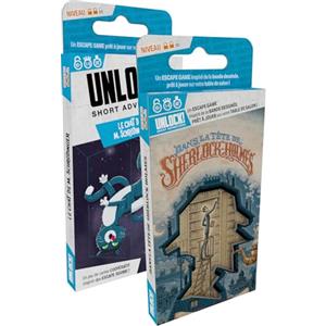 Asmodee - UNLOCK! Sherlock Holmes + Il gatto del signor Schrödinger - Gioco Escape Game per bambini e adulti, giochi di carte dai 10 anni, versione francese, Space Cowboys