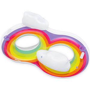 Bestway Ciambella Gonfiabile Doppia Rainbow Dreams 186x116 cm - Design Arcobaleno, 2 Posti, 2 Portabicchieri, Poggia Testa Confortevole