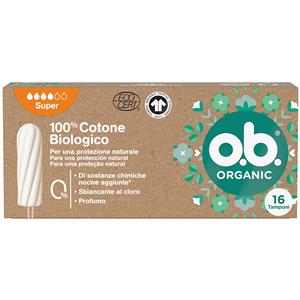 o.b. Assorbenti Interni Organic Super 100% Cotone Biologico, Assorbenti cotone certificato facili da applicare e rimuovere, Tamponi interni per flusso molto abbondante, 1 confezione da 16 tamponi