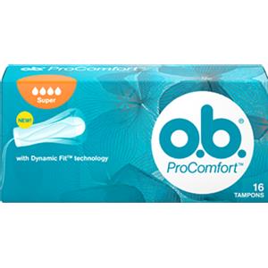 o.b. ProComfort Super - Tamponi Interni 16 Pezzi per Flusso da Medio a Pesante con Tecnologia DynamicFit e Rivestimento SilkTouch in Igiene Intima