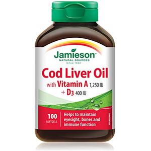 Jamieson Olio di Fegato di Merluzzo - Integratore Alimentare 100 Perle con Vitamina A, D3, EPA e DHA in Integratori e Vitamine