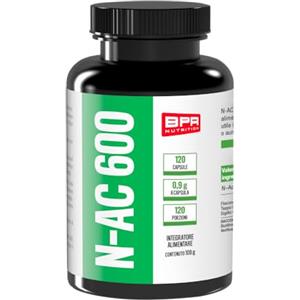 BPR NUTRITION N-AC 600 - Integratore Alimentare con 600 mg di N-Acetyl-L-Cisteina in 120 Capsule, Proprietà Antiossidanti e Supporto alla Sintesi del Glutatione