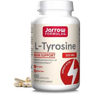 Jarrow Formulas L-Tirosina 500 mg - 100 capsule, Supporto per il cervello, Senza OGM e Glutine