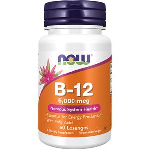 Now Foods Vitamina B-12 5000 mcg con Acido Folico - 60 Pastiglie Vegetariano e Kosher