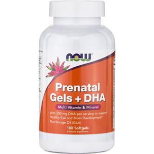 Now Foods Prenatal Gels DHA - Multivitaminico con 250 mg di DHA e Olio di Borragine, 180 Capsule Morbide
