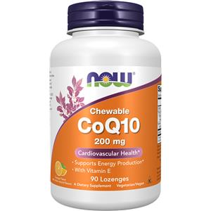 Now Foods Coenzima CoQ10 200 mg - 90 Pastiglie Masticabili al Gusto di Arancia con Vitamina E e Lecitina per il Supporto Cardiovascolare