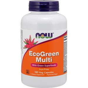 NOW FOODS EcoGreen Multi - Multivitaminico Vegetale Senza Ferro con Superfood, 180 Capsule