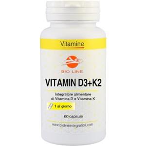 Laboratori Bio Line Vitamina D3 K2 - Integratore con 50 mcg di Vitamina D e 100 mcg di Vitamina K, 60 capsule