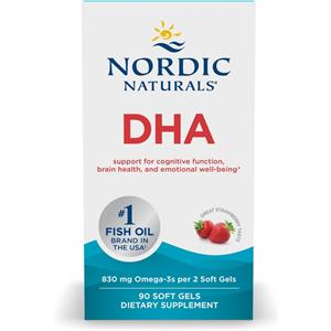 Nordic Naturals DHA 830 mg - 90 softgels al gusto di fragola per supportare memoria e funzioni cognitive