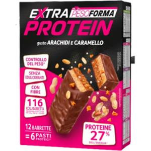 Pesoforma Extra Protein Barrette Arachidi e Caramello - 12 Barrette da 31g, Pasto Sostitutivo Ricco di Proteine