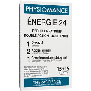 THERASCIENCE PHYSIOMANCE Energie 24 - Complemento alimentare con Ginseng, Carnitina, Taurina, Vitamina C e Magnesio - 30 Compresse