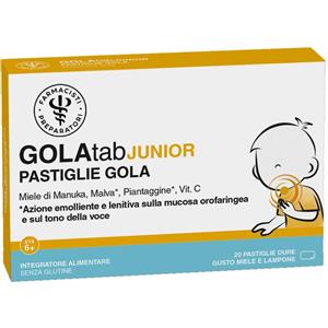 UNIFARCO GOLAtab JUNIOR - Integratore alimentare con miele di Manuka, malva e piantaggine - 20 pastiglie dure da 2,5 g