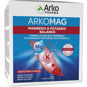 Arkopharma Arkomag Magnesio & Potassio Balance - Integratore per Stanchezza e Recupero Muscolare, 24 Bustine Gusto Frutti Rossi