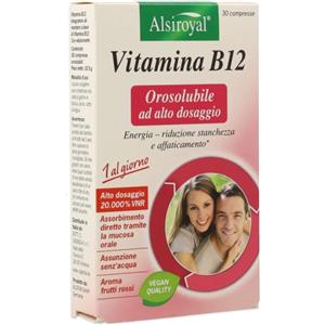 ALSITAN Vitamina B12 Orosolubile 30 Compresse - Alto Dosaggio 20.000% VNR*, Assorbimento Diretto, Aroma Frutti di Bosco, Adatto a Vegani
